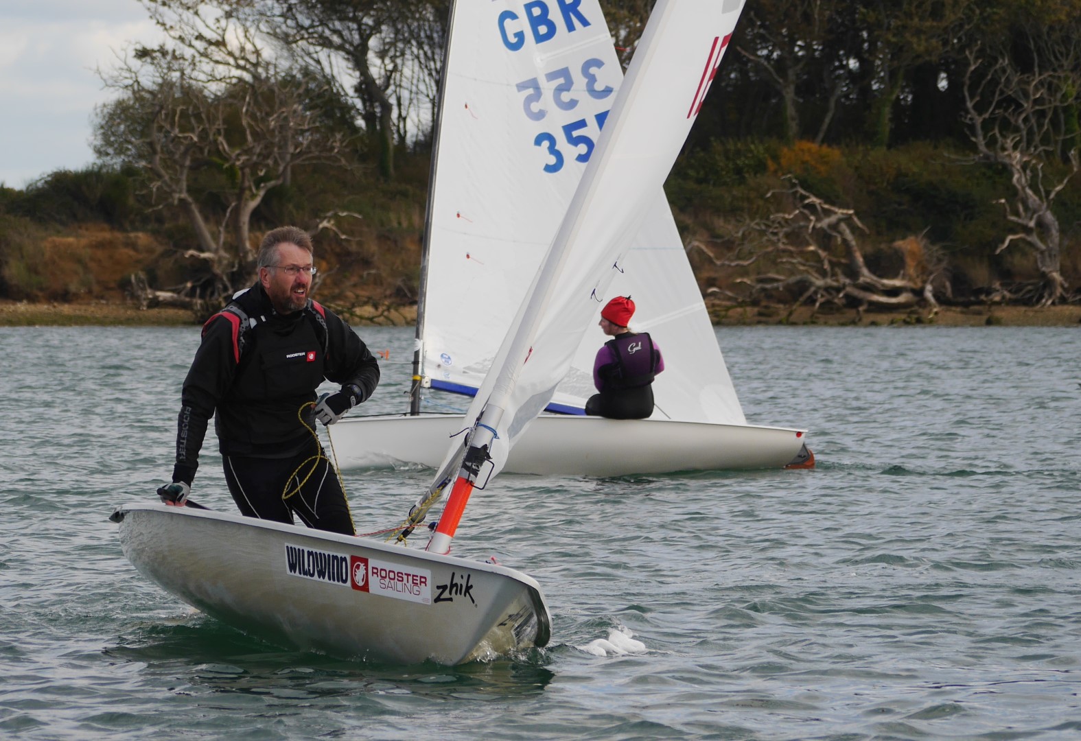 In the Medium fleet the first four boats exchanged places around the course with CYC’s Ian Barnett (Solo), Ian Payne and Charlie Porter ( Laser) leading Felpham SC’s Guy Mayger in the early stages, however, Guy managed to overhaul them all and win the race by over 20 seconds in the end.