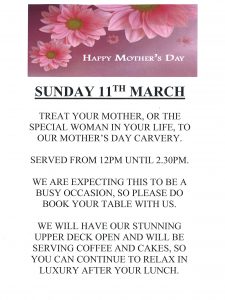 Mother’s Day Carvery- Sunday 11th March