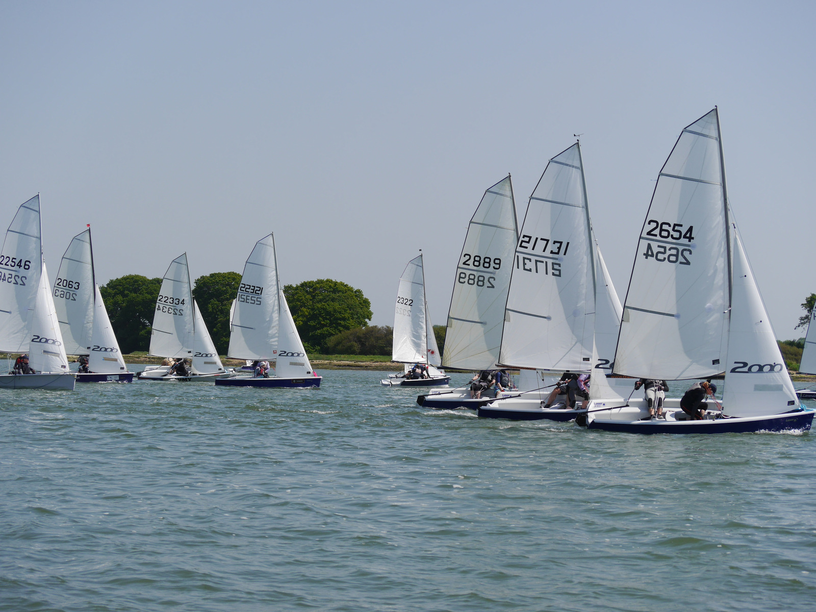 The race officer Richard Anderton, after consulting with members of the fleet set the 2000’s preferred course of a windward/leeward course with a spreader at the windward and a gate at the Leeward end. The high pressure system over England seemed to delay the arrival of the tide, so the boats launched into a strong rising tide. With a bright sunshine, light southerly wind, strong tide and an random patches of seaweed, the scene was set for a typical spring Chichester harbour race.