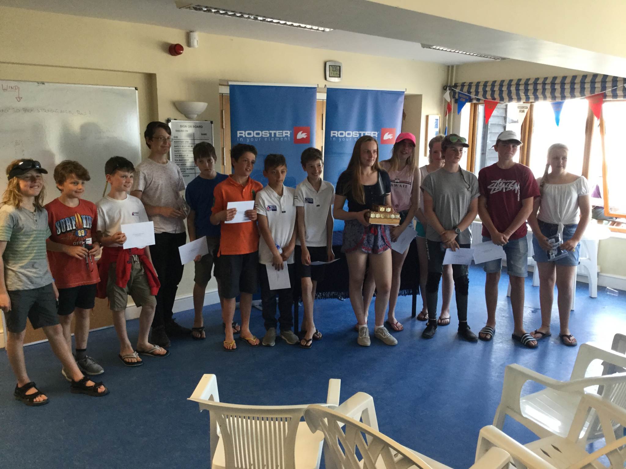 The CYC Topper Open 2018, sponsored by Rooster Sailing, was held on a bright sunny afternoon with light 7-8 Knot wind from the South. The Race Officer Charlie Porter set a Triangle/Sausage course, setting the length of the beat to avoid both the marina channel and the wind shadow cast by the club.