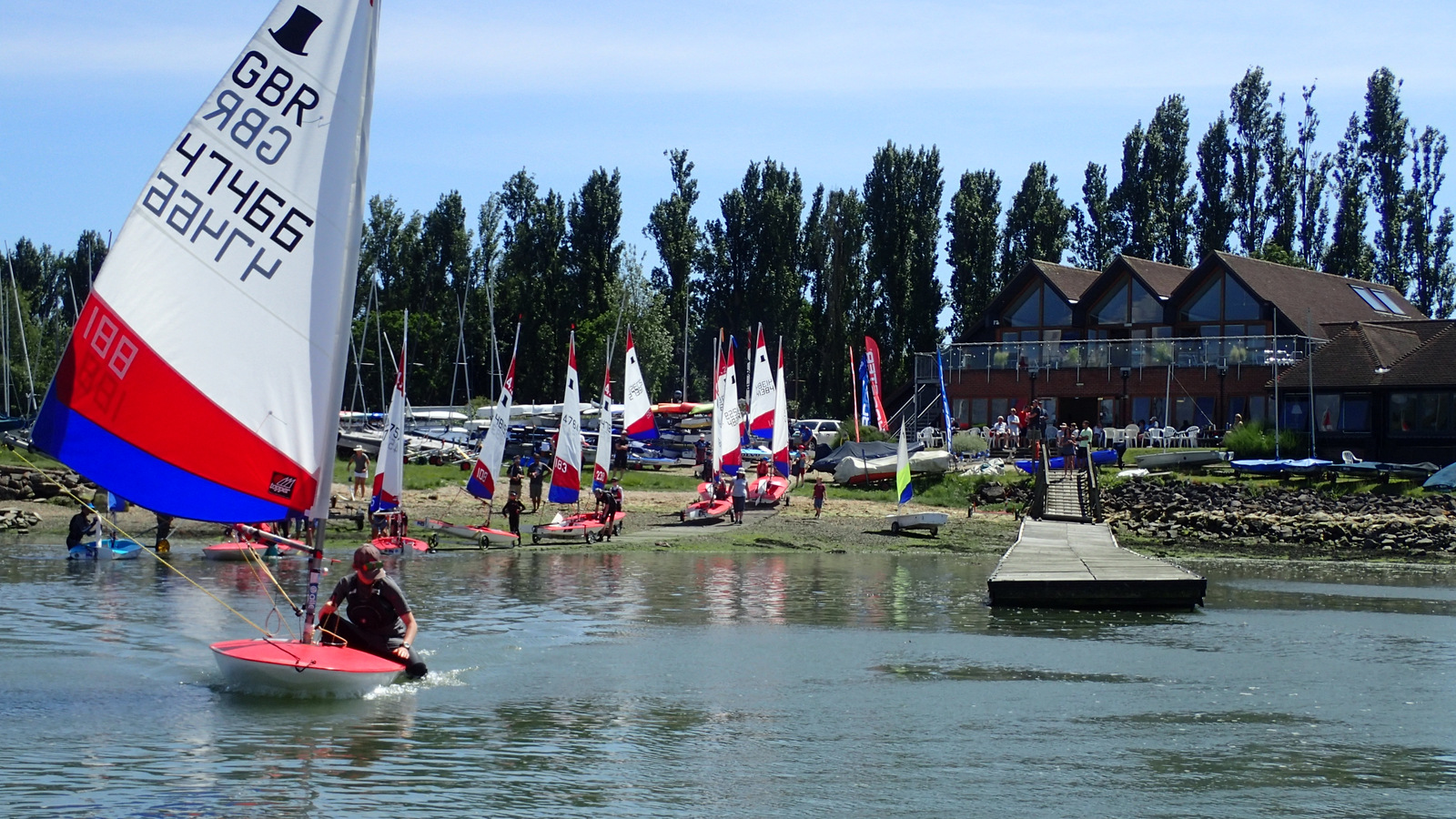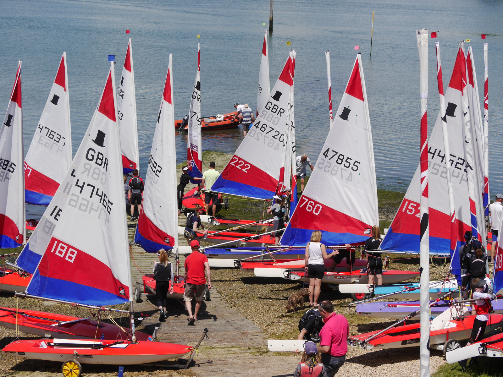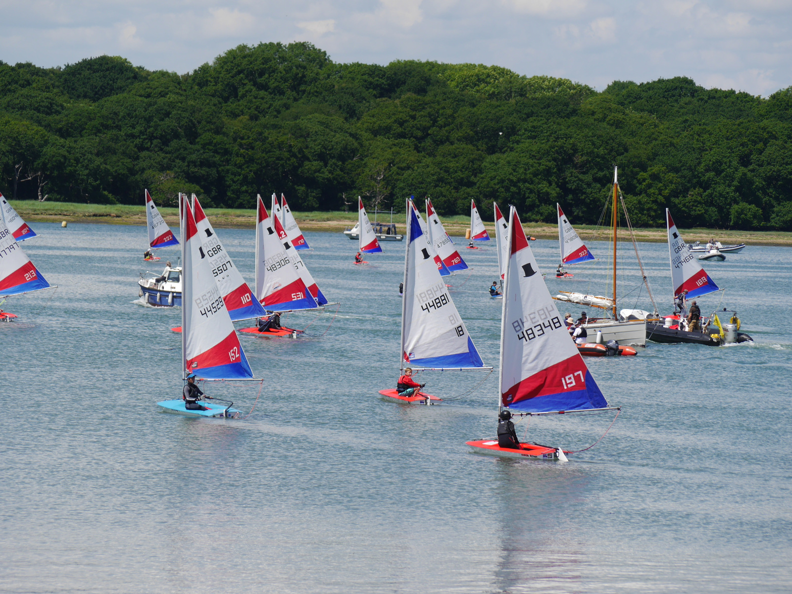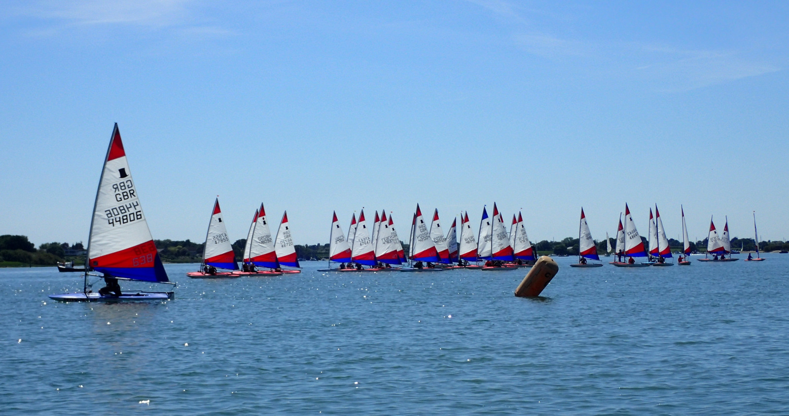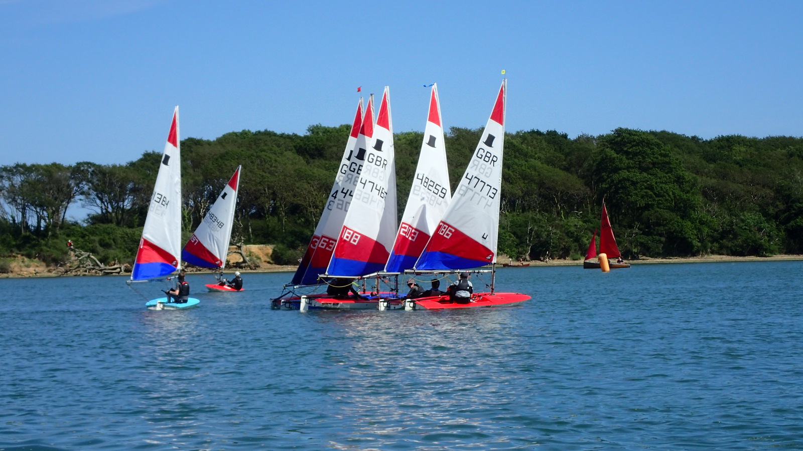 In the five point three fleet the clear winner of the CYC Topper Trophy was Lilly Barrett from Island Barn Reservoir SC, who took all three races in first place. The spectators particularly enjoyed her tactics in the final race, where she built a sizable lead by best exploiting the effect of the fast falling tide. Second place went to Yana Skvortsova, also from IBRSC, who took two second places in the first two races. Third place went to Daniel Perkins from Warsash SC.