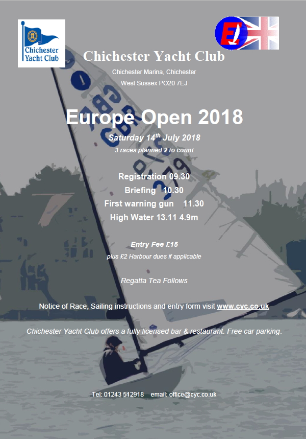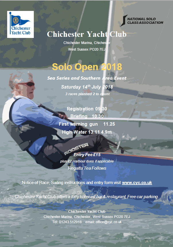 Visitors are welcome to join us for the Solo and Europe Open meeting at Chichester Yacht club on Saturday 14th July 2018.