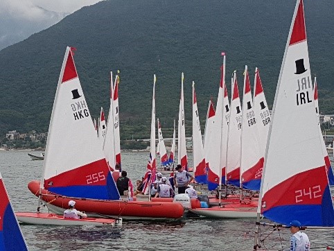 This summer I went on a once in a life time adventure. I took part in the International Topper Class World Championships in China. It took over 2 days to get to the sailing club as our flight was delayed but when we got there it was worth it. Our hotel rooms over looked the marina and we could see the little islands dotted in the sea on the horizon. We arrived in the morning, so we had our first Chinese breakfast which was rice and noodles. This is what we would be eating for the 8 days to follow! After our breakfast I registered and had the mission of finding my charter boat. Once I found it, I rigged it and checked everything worked. With the boat sorted we headed back to the room with two giant pot noodles as we were both too tired to stay until dinner time!
