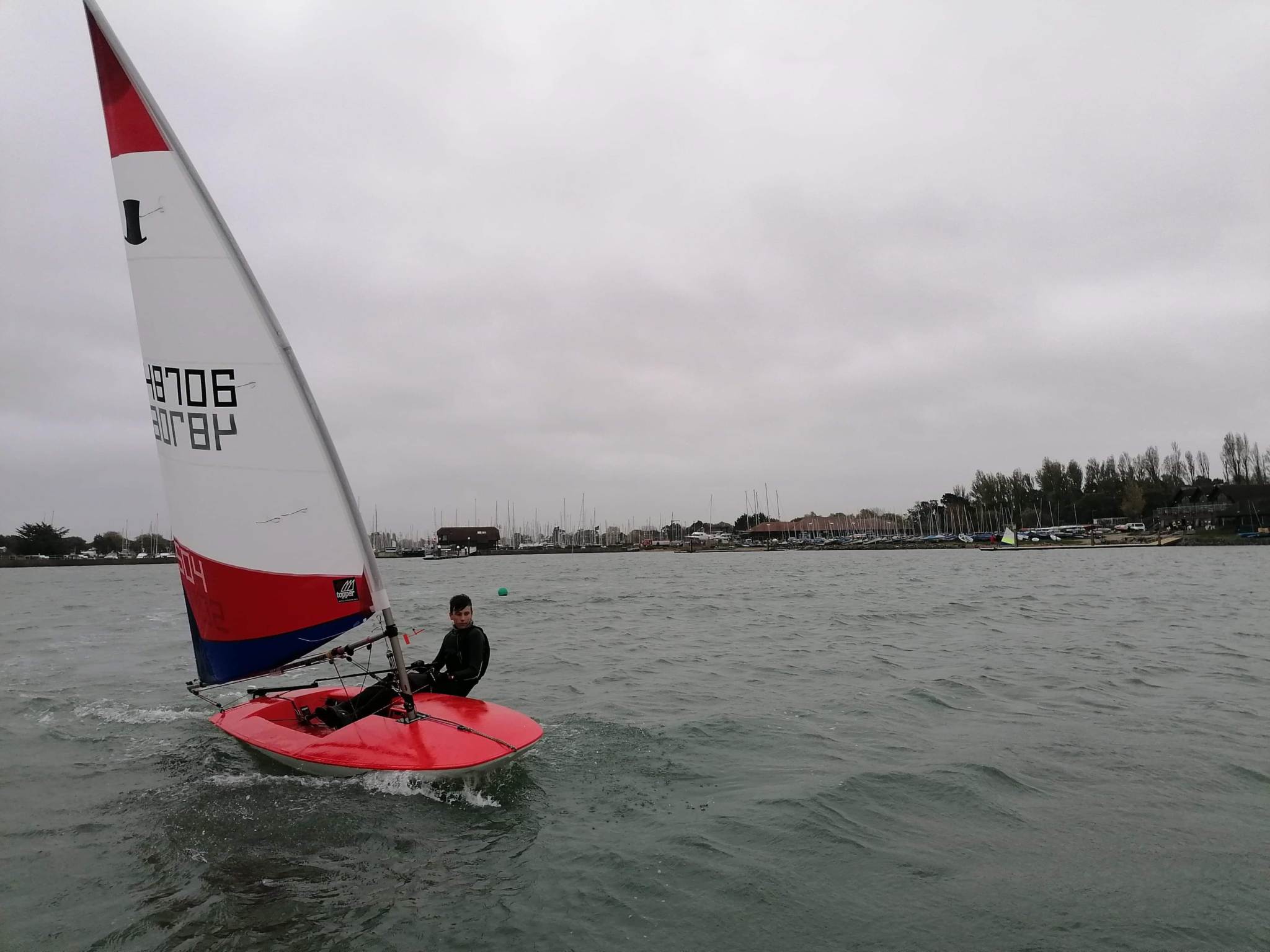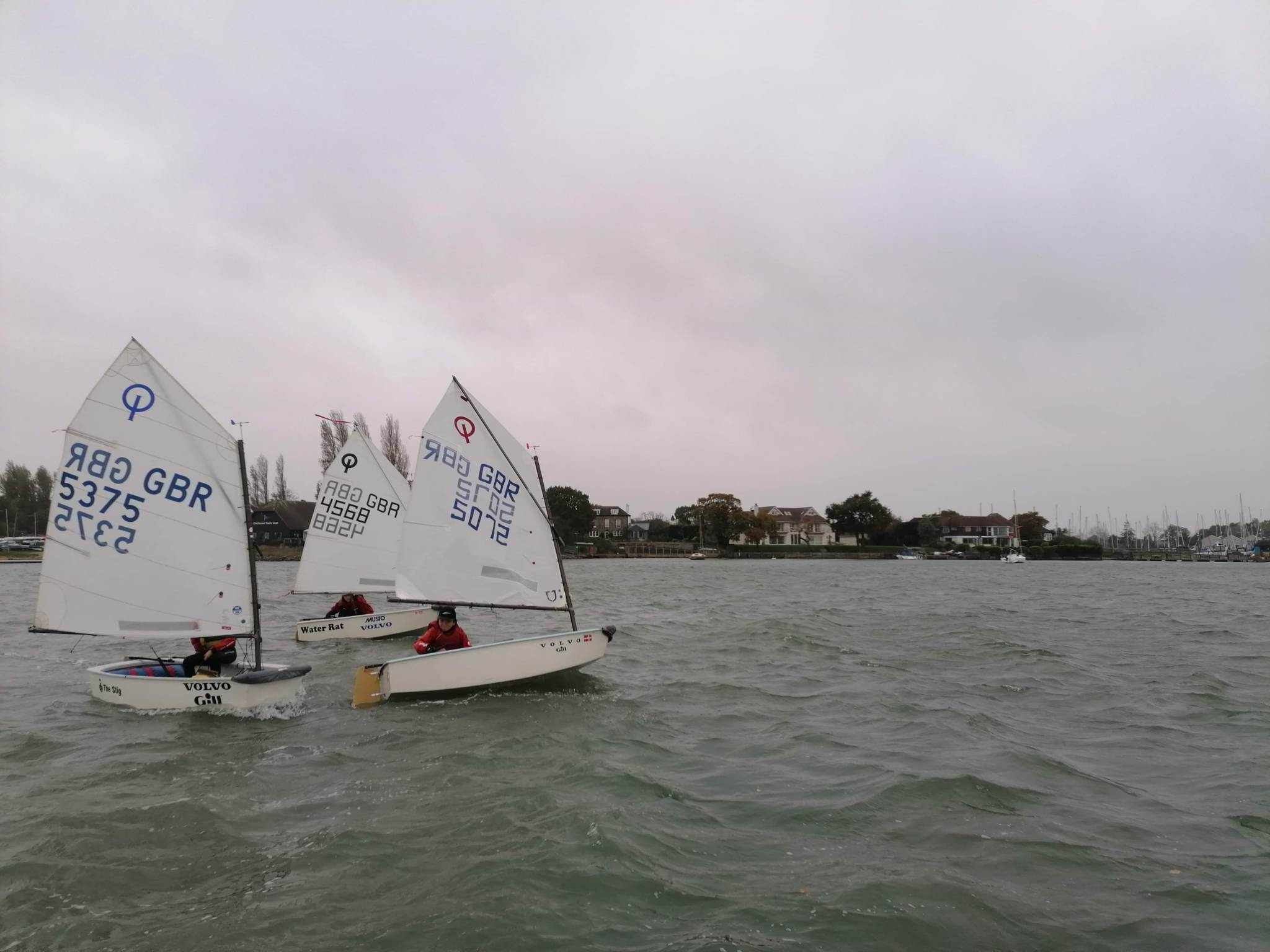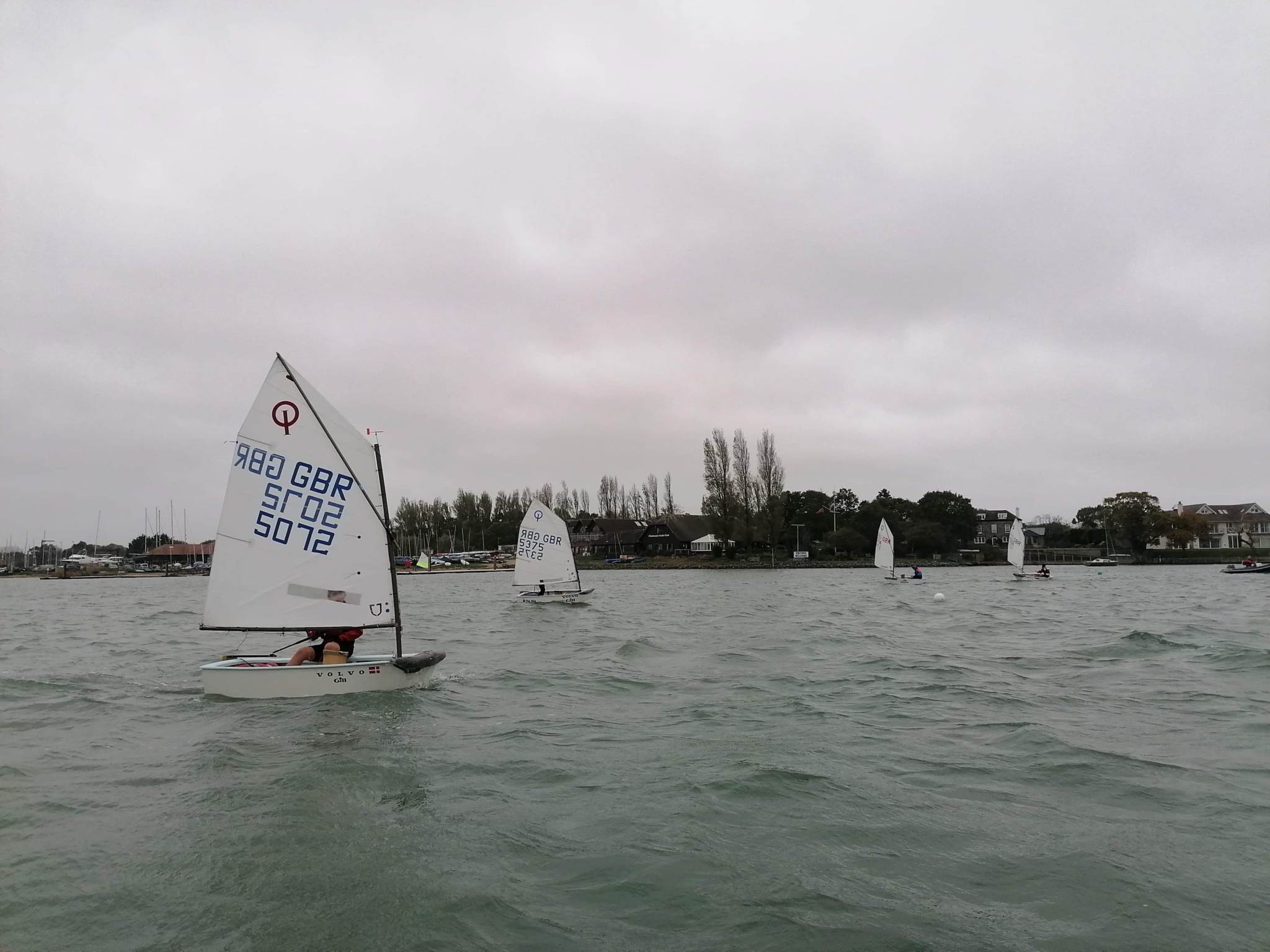 Friday saw a group of 7 juniors, 6 Oppies and a Topper, compete in the Second Autumn Turbo Regatta. With winds of 20-25+ knots it was a trying day for all the sailors, with some coming ashore after the first race. After 3 races completed, each sailor took part it time trials from the pontoon, out to a buoy and back, to see who was the fastest.
