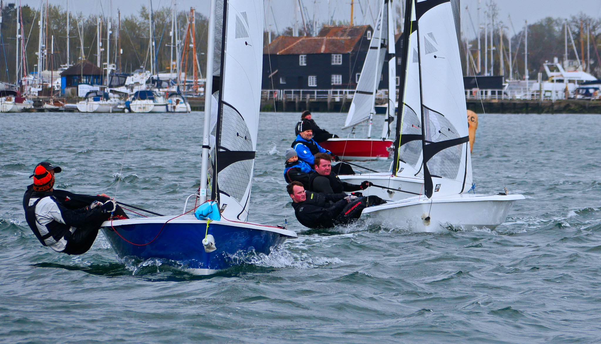 Race one was against a strong flooding tide, Ian Walker got a flying start from the Pin end and led for much of the beat, but it was Jack Holden that reached the windward mark first, closely followed by Ian and then Nick Craig. As the race continued the leading boats were very closely matched, Jack led the fleet for the first few laps with Nick and then Ian closely following, but after four laps Nick Craig emerged as the leader.
