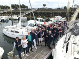 On arrival in Cherbourg the fleet headed to the Rally mooring pontoons to find a deserted Misty Blue already moored up, her crew either sleeping or refreshing themselves in the marina bar (….it was the latter!). All fourteen boats made it safely and rafted up on each other, filling the marina basin with CYC flags. Much chatting on the pontoon over a few well earned beers followed with most crews heading to bed early following the long day.