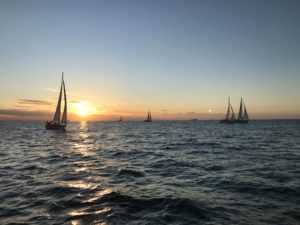 Sarah, on board Pell Mell, had arranged a group wine tasting in the afternoon. CYC crews never shying away from a drop or two, especially if it is free, were out in force. It was an excellent afternoon with many good wines. The wine merchants also kindly offered to deliver our various hauls back to the marina in their van, which they did very promptly, beating most of the crews, who were walking back to the marina. The crew of Jessica got a fright as they returned to see that she had taken on a considerable list to starboard. All was well as the kind chap from the wine merchants had loaded up her side deck with various boxes of booze causing her to appear to list somewhat alarmingly from a distance.