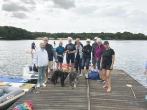 Our rally was based at Swanwick Marina on the River Hamble. Once all the boats had arrived we started with pleasant circular walk to Swanwick Lakes which is a hidden gem of a nature reserve managed by NATS (National Air Traffic Service). NATS are responsible for UK and Atlantic air traffic control. The walk was followed by a pontoon party and then a group meal at The Old Ship Inn.