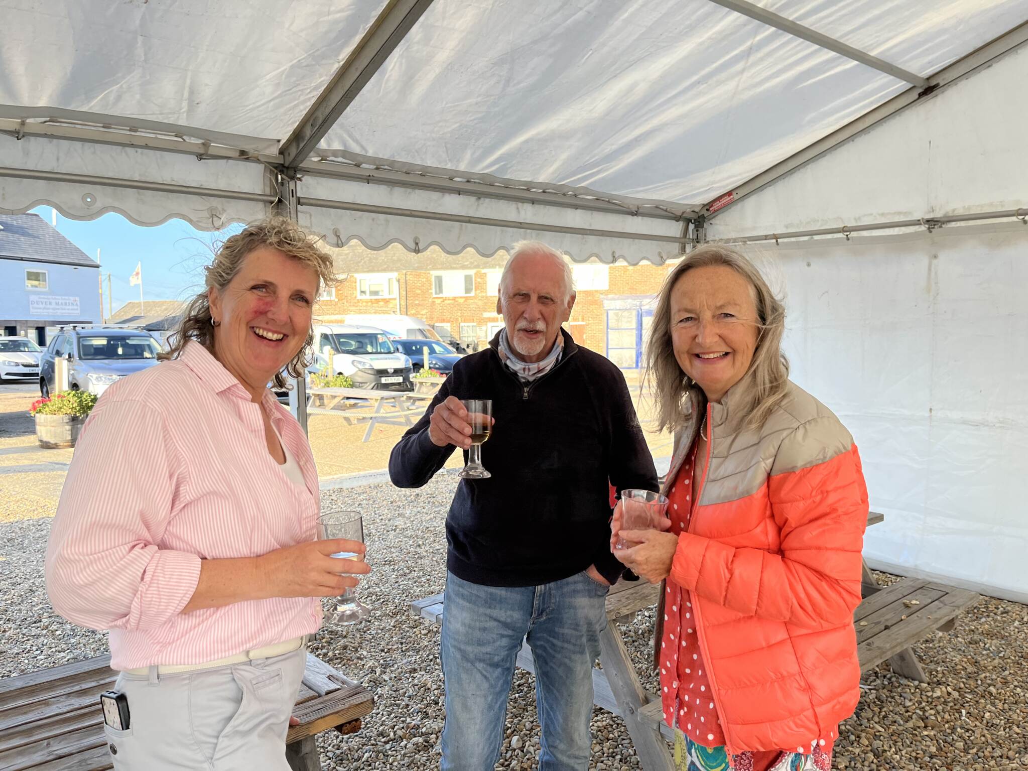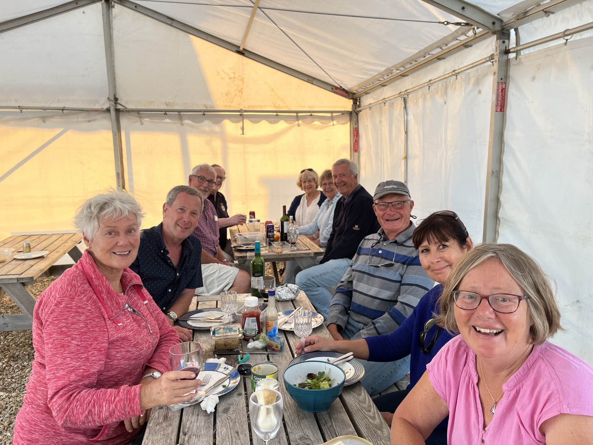 The tide runs across the finger berths at Bembridge, so this, plus a strong wind, meant that mooring was going to be interesting! In the end it took at least four of us to push and pull the boats into place, as even the most experienced skippers found the tide caught their bow as they came alongside. There was much swapping of experiences later on as we relaxed at the on-shore pontoon party and BBQ.