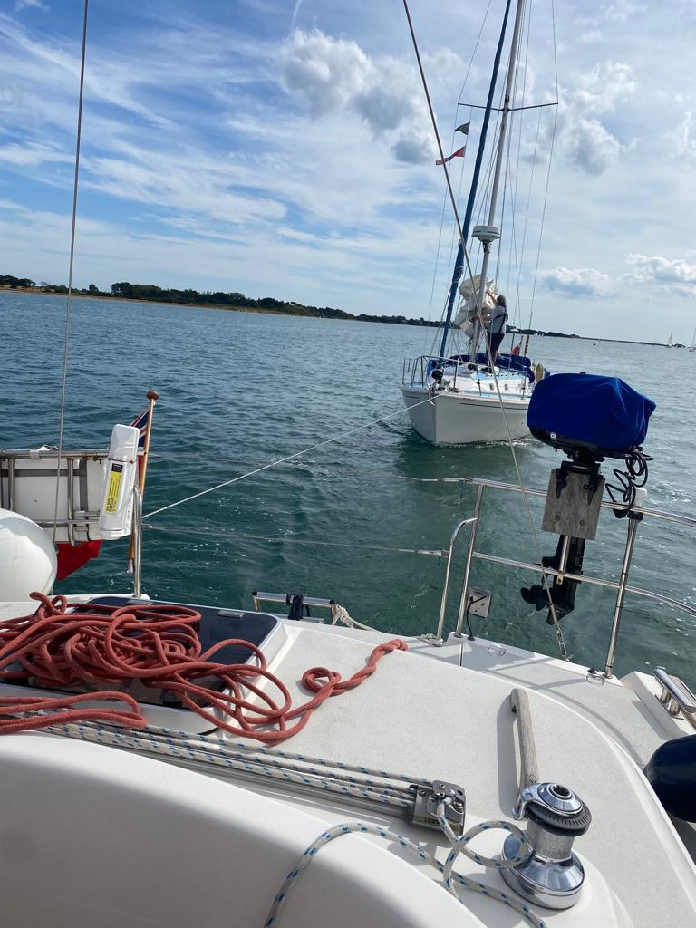 The trip back proved unlucky for Sounio. First a boat backed into them as they were leaving Bembridge harbour, then their engine stopped off East Head. Luckily, Aquadisiac were nearby and gave them a tow back to a buoy near the marina, and from there Sea Start took them back to their berth.