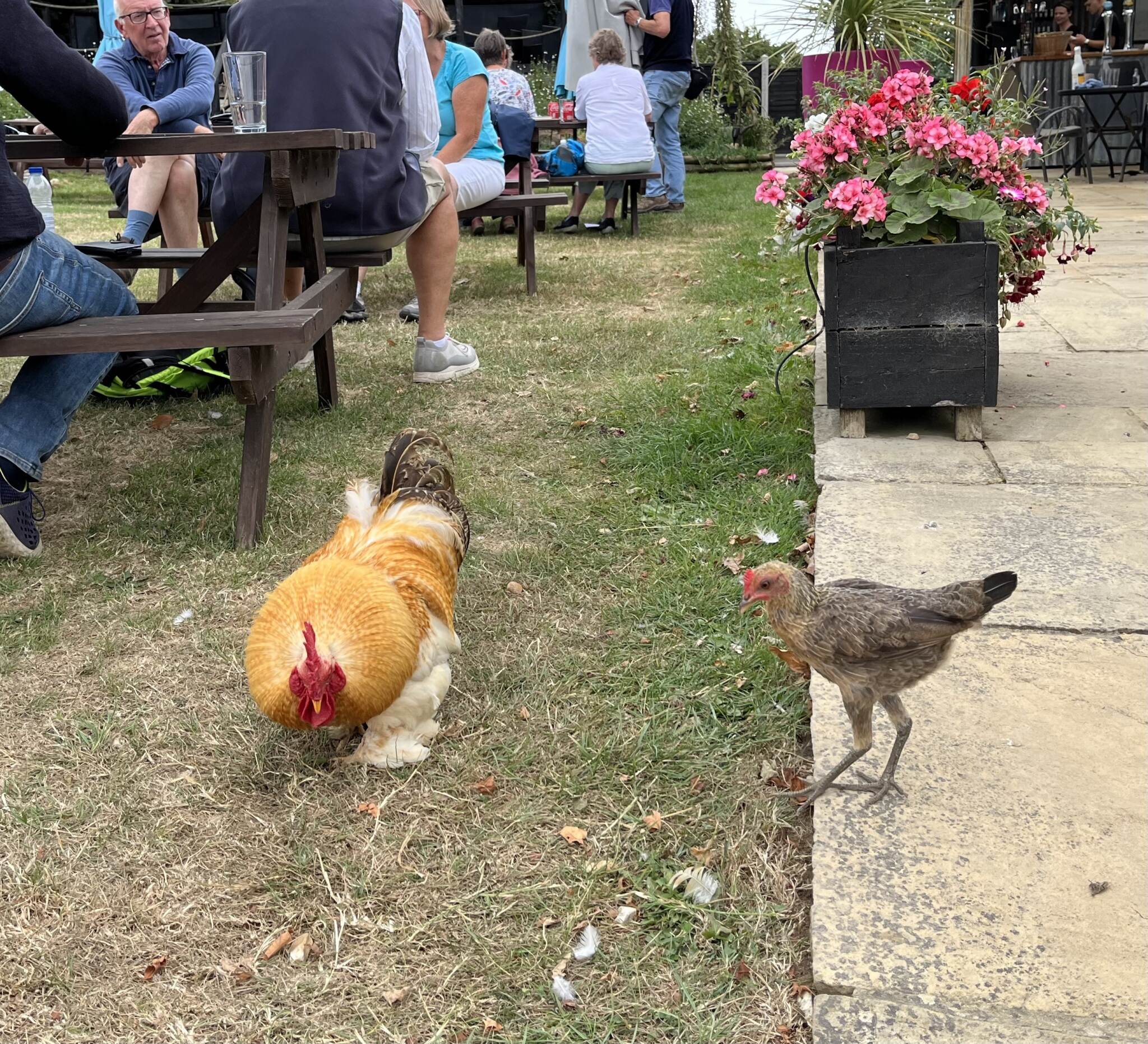 The general consensus was that it was worth the effort. The views from the top of the vineyard were stunning and the wine tasting session got the thumbs up too. We had a very pleasant, relaxed lunch in the garden where we were entertained by live music and also by the rare breed chickens that wandered between the tables. Afterwards some of us opted for a (rather hot) walk back to the marina while others took the bus.